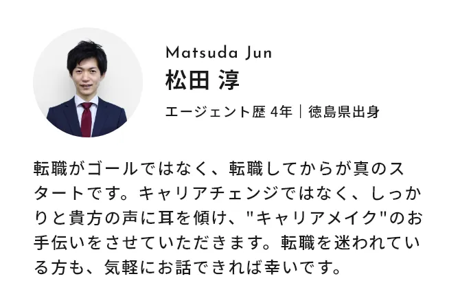 ※他にも複数人在籍しておりますので、他のエージェントが担当する可能性もございます。